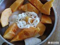 如果是五人分量,就放两碗清水,放锅里煮沸,待沸放红豆和西米,待沸,放木瓜,放牛奶,待沸,放糖,沸了就成了~