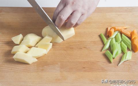 第3步、胡萝卜、番薯、土豆切成小长条条或滚刀块备用。