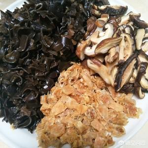 材料:木薯粉、香菇、木耳、虾仁、猪肉、笋。