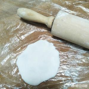 6、揉好的木薯粉团,扯一小块用手捏成圆形,再用擀面杖擀薄。