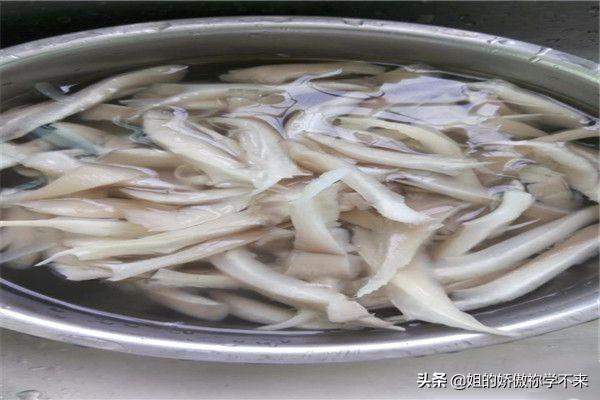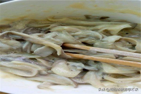 2、蘑菇用水清洗干净,挤出水分,撕成长条备用,(不用撕太细)