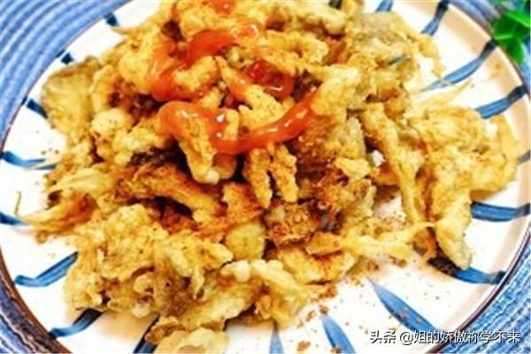12、这样做的椒盐蘑菇不油腻,放几个小时都是酥脆的