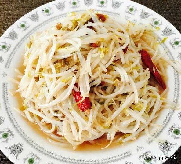 4.第四道菜炒豆芽,豆芽洗干净滤干水分,然后锅头烧热了之后放入适量的油接着再放入大蒜辣椒直接用大火炒到豆芽断生变软,再放适量的生抽盐好友翻炒均匀即可出锅了。这几个食材可以做个四五道普通的家常菜。
