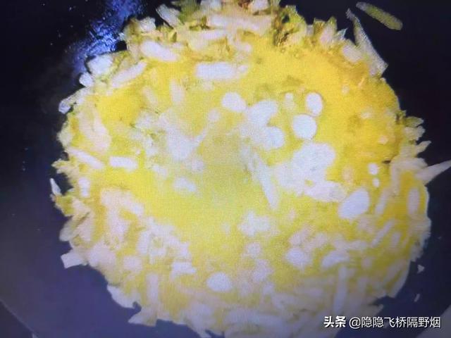 4.起油锅,倒入白菜蛋液,用小火摊成饼状,