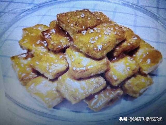 材料:豆腐500克,鸡蛋一个,盐、油、白糖、花椒粉、生抽、老抽、温水、白芝麻适量