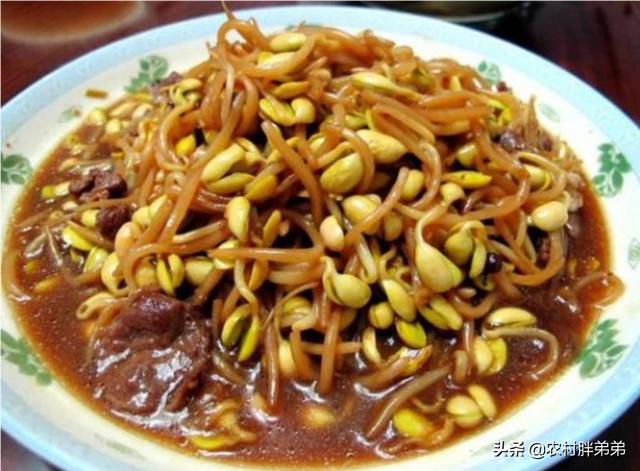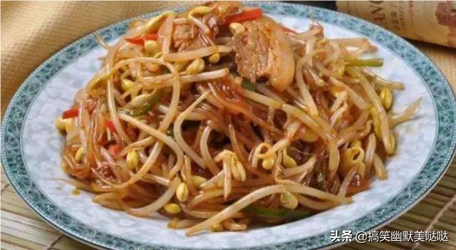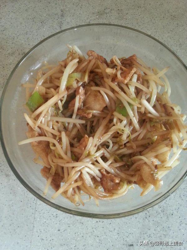 这第二道就是豆芽炖肉,最家常,最普遍的一道菜,豆芽吸收了猪肉的肥腻,使豆芽更加的香气扑鼻。