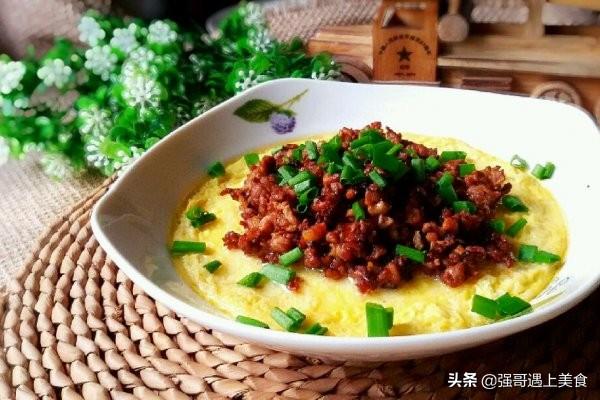 2肉末蒸鸡蛋,把鸡蛋准备敲壳把蛋青蛋黄放入陶瓷碗中均匀的搅拌,放合适的盐在放入蒸锅里面蒸10分钟,这个期间可以把切好的肉末在锅中下油翻炒,到入生姜大蒜末,,盐鸡精,加一点欠粉到一点水煮一两分钟收汁起锅。在把炒好的肉末放在蒸好蒸蛋面上,淋一点生抽和葱花完成。