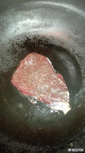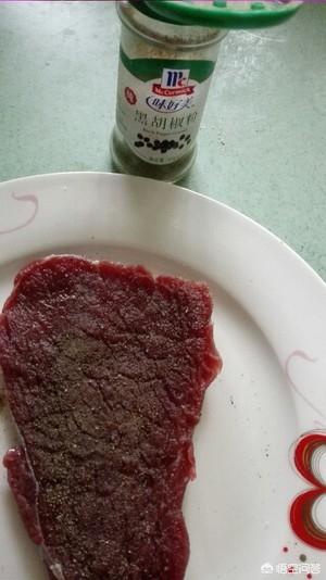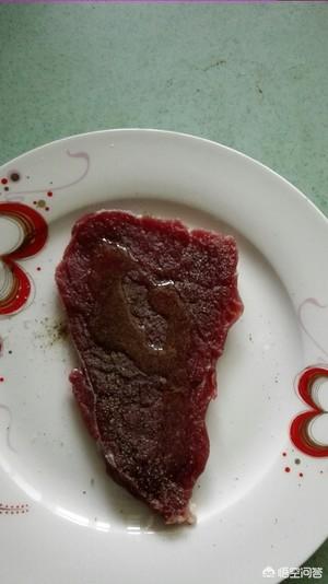 先将牛肉用刀背拍散两面都拍这样容易入味,更容易煎熟加入黑胡椒、白胡椒、盐、味精、五香面、一品鲜、耗油、生抽、红酒、蒜末、香叶,用手抓匀封上保鲜膜放一晚上第二天再煎味道极好西兰花绰水牛排入锅前用沾生粉,把切好的西红柿跟洋葱放入锅中,煎牛排用的油是花生油盘子旁边放入番茄酱