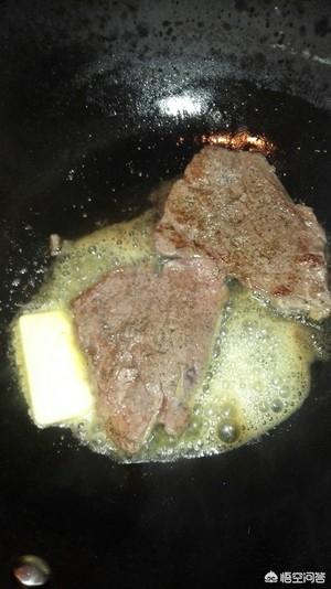 煎的差不多了放一块黄油入锅~黄油可增加牛肉的香味,可不放~