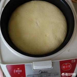8、把电饭锅里抹一层油,然后按下煮饭键,把锅预热1-2分钟,按下煮饭键,大概3-5分钟跳到保温的按键,这时拿一条干净的湿毛巾放在电饭锅改上面排气孔的位置,大概2分钟左右,再按下煮饭的按钮。大概3分钟左右就会又自动跳,这个时候不用管它,就让它在里面焖8分钟左右。接着再次按下煮饭的按钮,跳起来后,再等几分钟 此时蛋糕应该就好了。