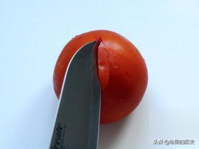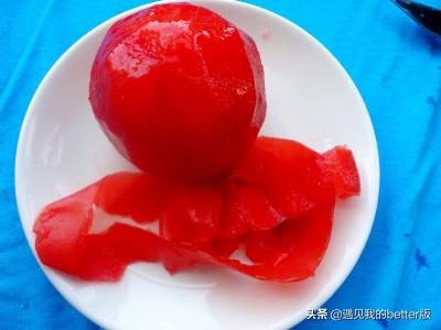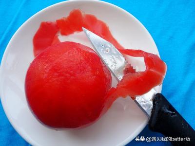 2、用水果刀像削苹果皮一样削西红柿皮。
