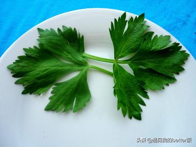 1、首先我们需要用到的主料是西红柿1个,辅料是芹菜叶2片。