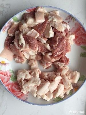 五花肉切好,条状片状都可以,肥瘦也可分开,肥的先在锅里炸出油。