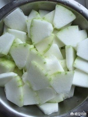 冬瓜去皮后洗干净,切成0.5CM厚度的块状。