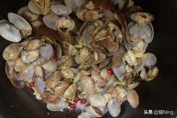1煮花甲。花甲洗干净煮开,煮开后会主动张开嘴。