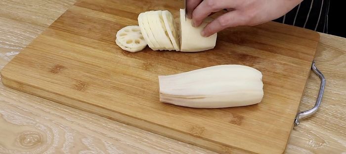 200克莲藕去皮切片。