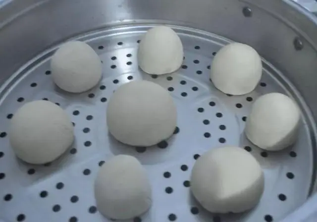 将醒好的馒头逐一放在蒸屉上,放馒头的时候,每个馒头之间要留出馒头一半的距离,温水或凉水开始小火蒸5分钟,之后开最大火力蒸。水开后20分钟就差不多了,不过也要看馒头大小。
