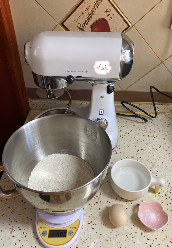 配方:面粉350g,鸡蛋一个,清水适量,玉米淀粉适量