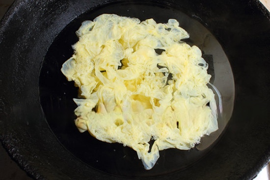 锅里把500ml水烧开,然后关小火,让水面平静,把1个鸡蛋呈一条线般的转圈倒入开水中,漂亮的蛋花就出来了