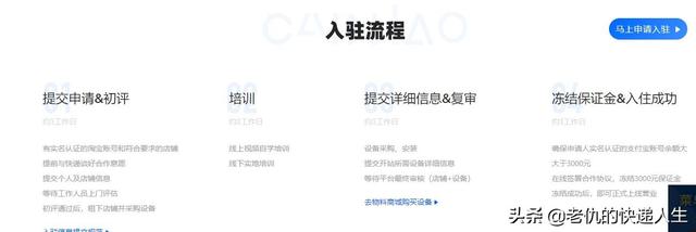 A. 申请流程:(1)站点提交初步信息(个人/店铺信息)——(2)初评——(3)培训——(4)提交详细信息(设备信息)——(4)平台审核——(5)签署协议,冻结保证金——(6)入驻成功;具体审核结果以短信通知或登录菜鸟官网的入驻进度处查看