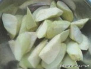 7.茄子去皮切滚刀块,调少量盐撒一下水。