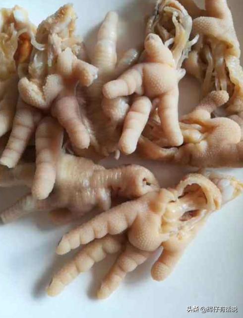 步骤一、把买来的鸡爪剪掉指甲,用刀剁成小块(一个鸡爪可以分为三小块,这样就剁的比较均匀一些),放入清水中洗净血水(最好浸泡一个小时后,这样鸡爪会更白)