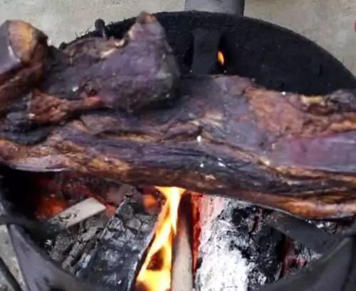 4/7 大锅内放入过水的腊肉、笋干、姜、蒜、花椒、干辣椒,加入较大量的水