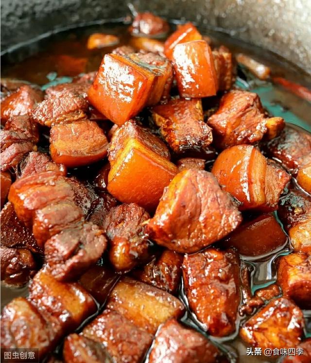 注意,醋、糖都是增加红烧肉的鲜度的,不能吃出醋味和甜味,所以醋和糖的量要掌握好。