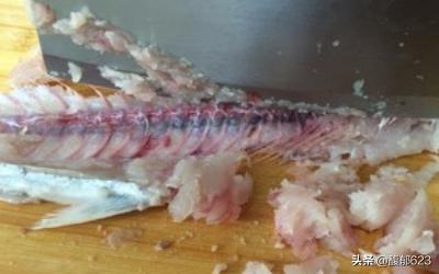 1、把鱼去头洗净,刨开,分成两片鱼肉,鱼骨剔出,斜刀轻刮,将鱼肉刮下,鱼骨两侧的肉小心刮下。