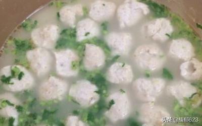6、开小火,鱼汤微开,鱼肉靡挤成丸子,下入鱼汤中煮熟煮熟丸子,加入盐调味,出锅前放入香菜末和香油。