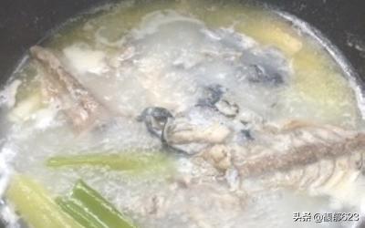 5、锅中放油,热锅凉油,放入鱼皮鱼骨煎一下,煎直鱼皮鱼肉变色,加入热水,葱姜,煮开后小火炖,炖好后的鱼汤过滤掉鱼皮鱼骨及葱姜。