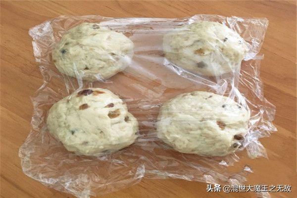 取醒发好的面团,放在案板上,加入葡萄干,再次揉搓,直至揉匀