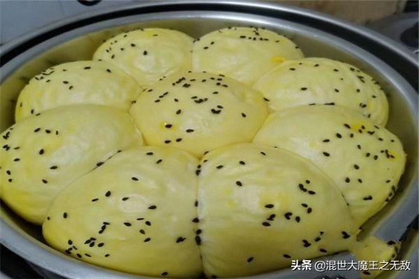 再次醒发好的面团上涂上蛋液,撒上黑芝麻,就可以蒸了