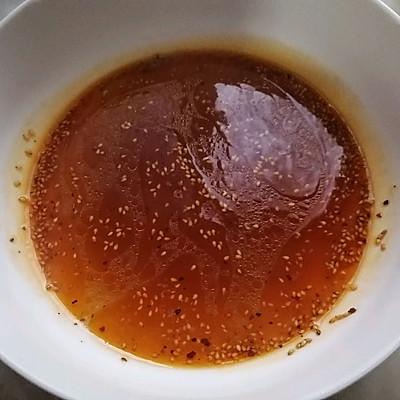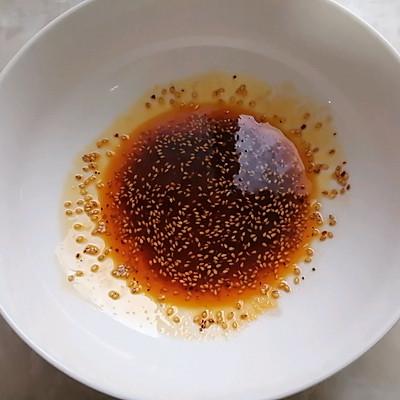 6、煮面条期间,取一个大碗,碗里依自己的口味放入辣椒油,熟芝麻,生抽,蚝油,香醋,胡椒粉,鸡精,盐。