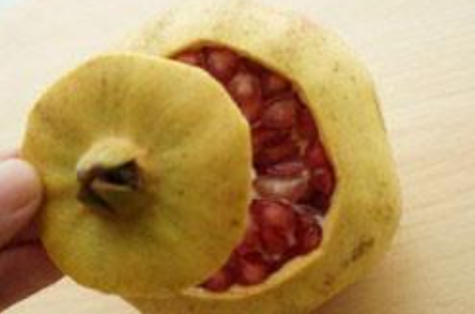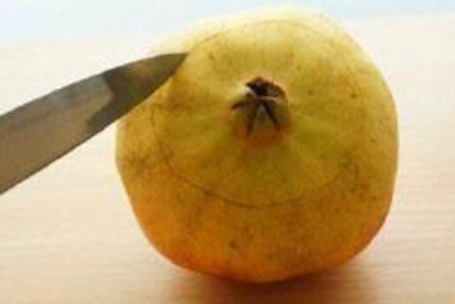 接着在石榴的花蒂处用刀划一个圆圈,如下图所示。