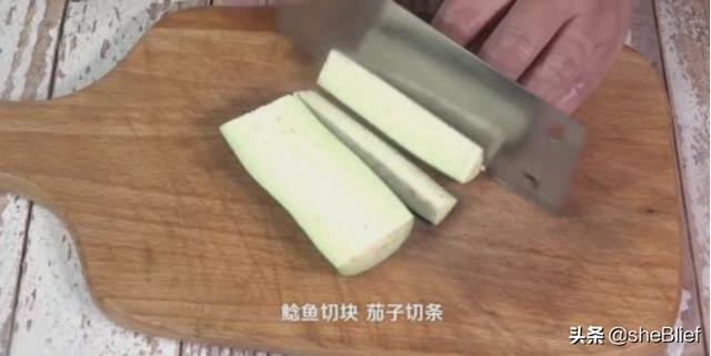 1、鲶鱼切块,茄子切条。