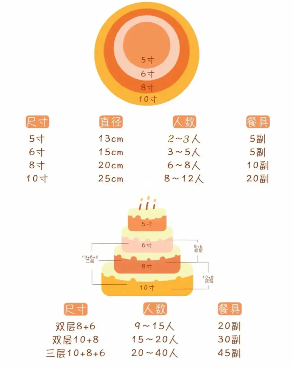 6.16寸蛋糕:12人以上,适合各种中型庆典。